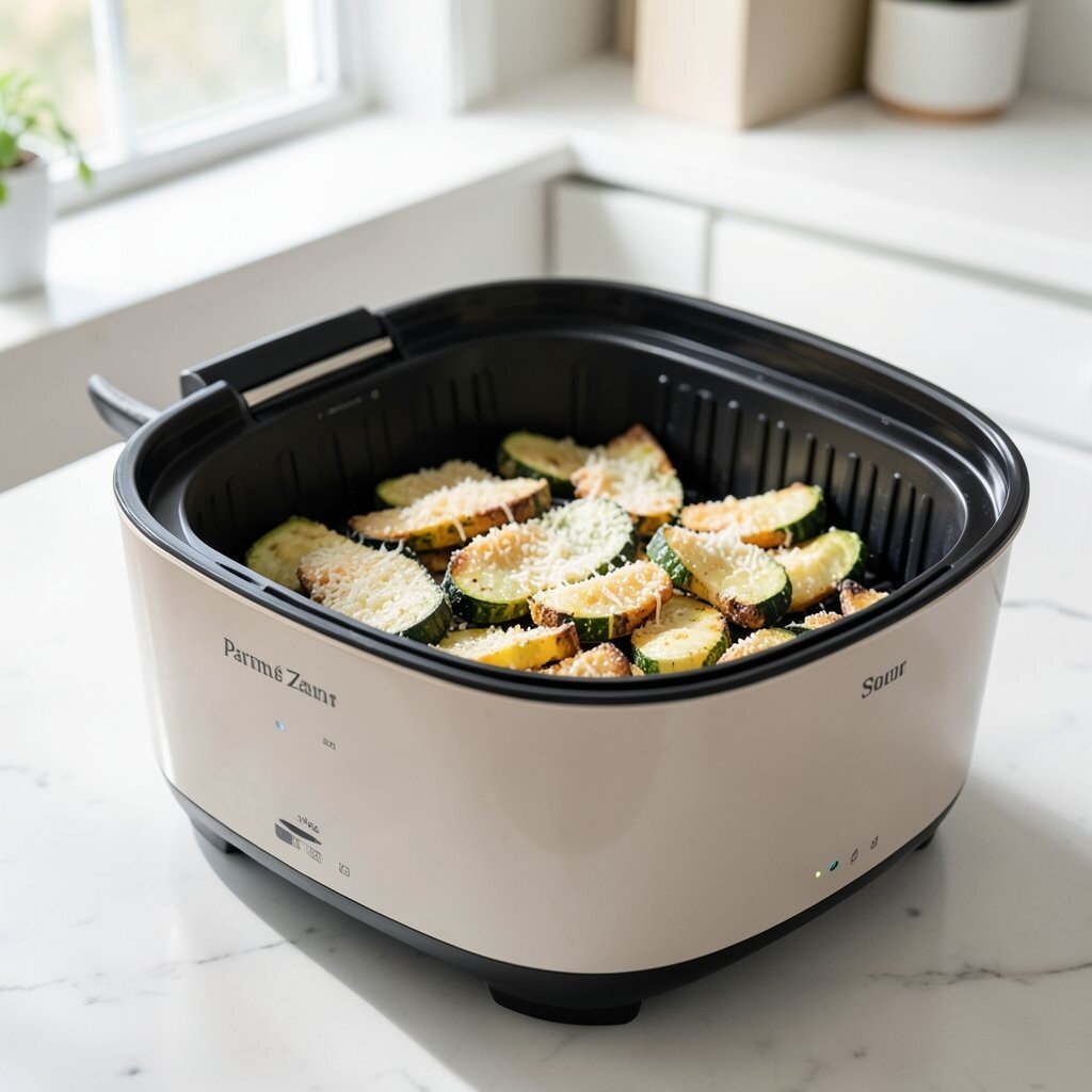 Coat the zucchini sticks in a mixture of Parmesan cheese and breadcrumbs before air frying. The result is a golden, crunchy exterior with a soft interior.