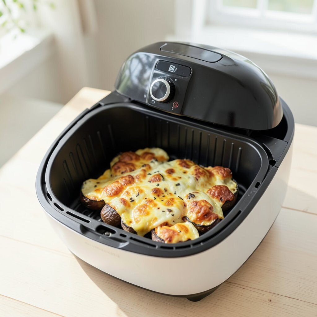 Eggplant Parmesan is a cheesy, savory dish that’s perfect for any Italian meal. The eggplant is sliced and coated in breadcrumbs before air frying.