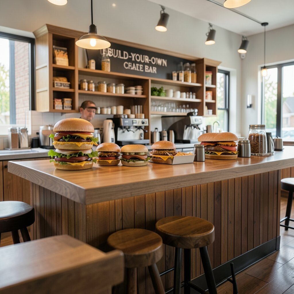 Offer a range of toppings like lettuce, tomato, cheese, and pickles. Include options for beef, turkey, and veggie patties.