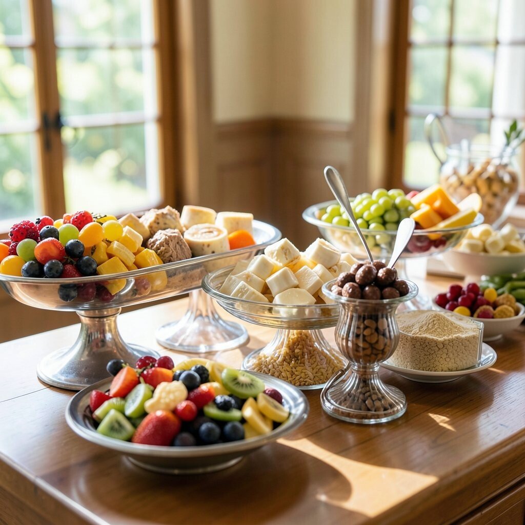 Create a refreshing and healthy bar with fruit and yogurt. The vibrant colors of fresh fruits make for an inviting display.