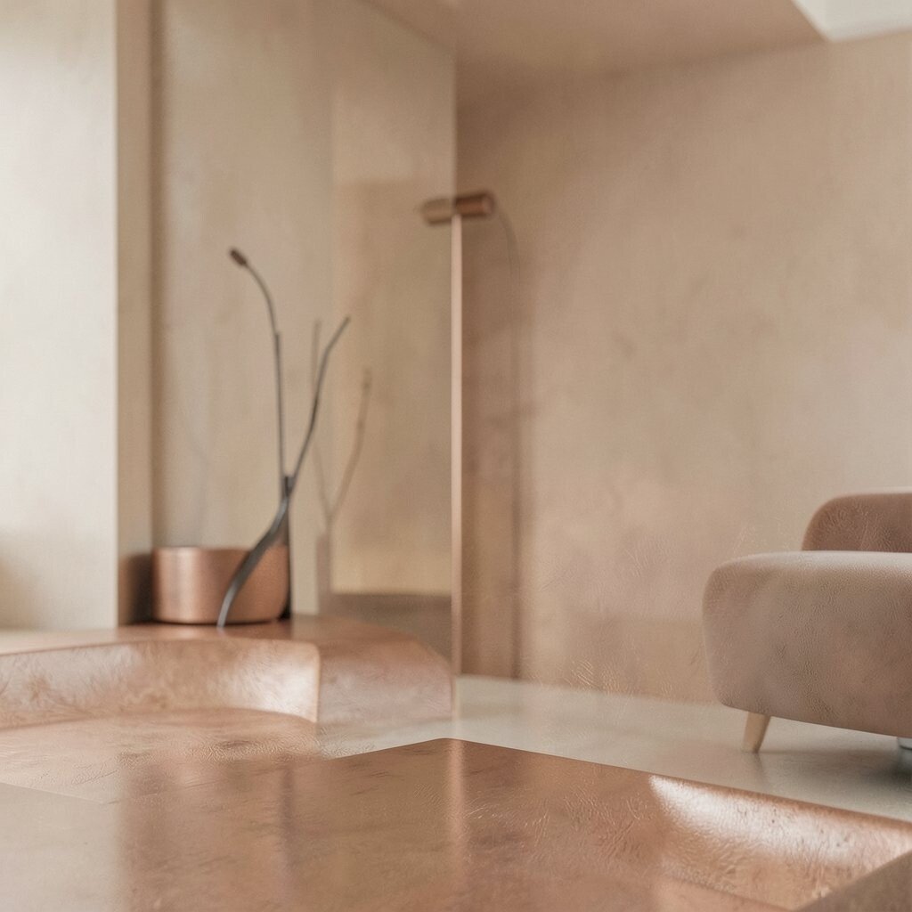 Muted copper gives a room a soft glow with a touch of shine. It feels earthy and special, like old metal with a warm finish.