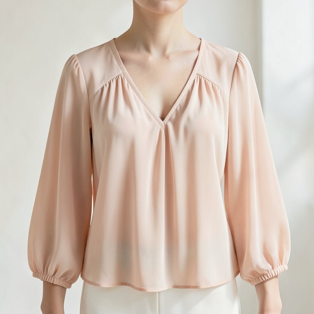 This is a great choice for day events, brunch, or office wear. It can hide areas you may not want to show while still looking light and fresh. Try it with slim pants or leggings so the shape stays balanced and neat.