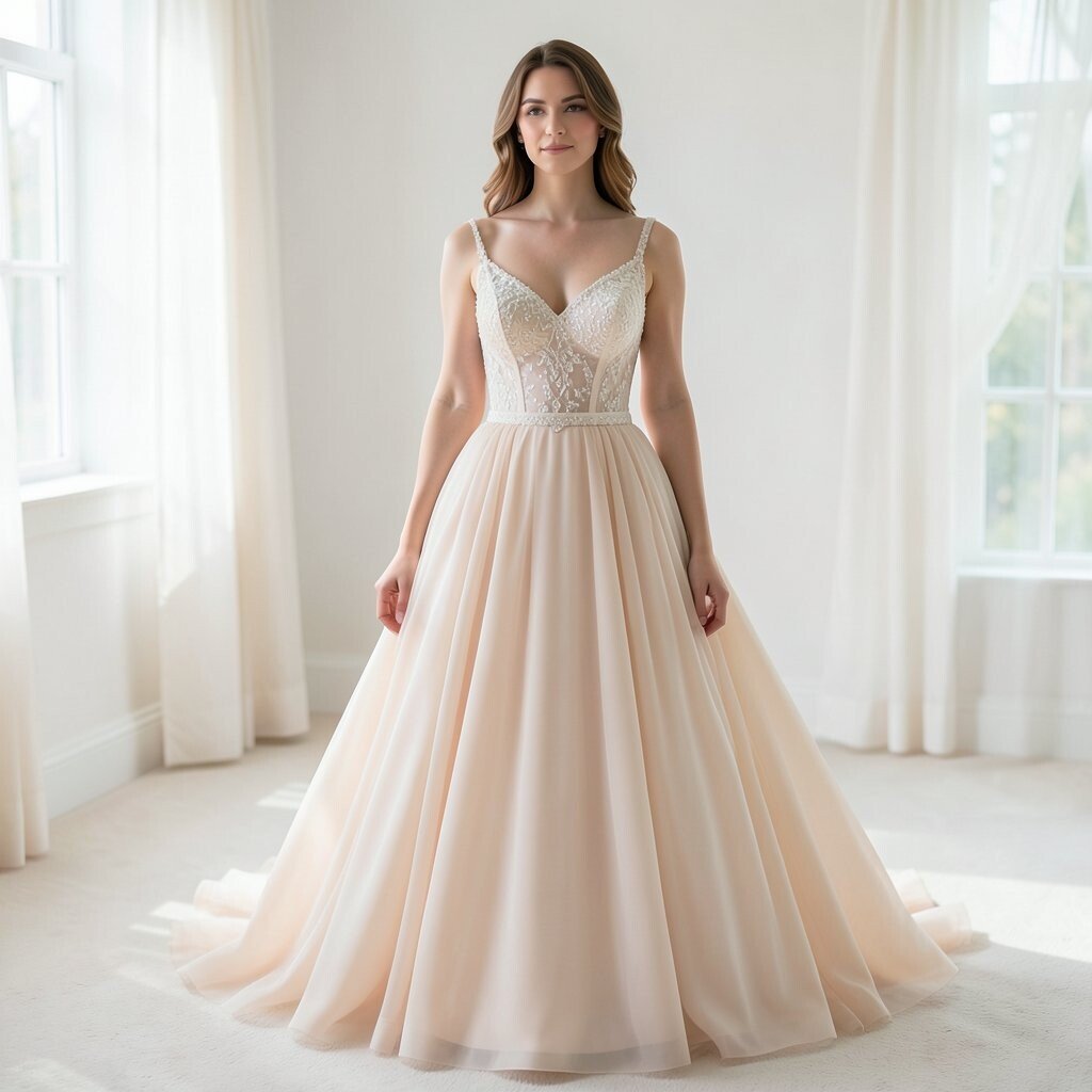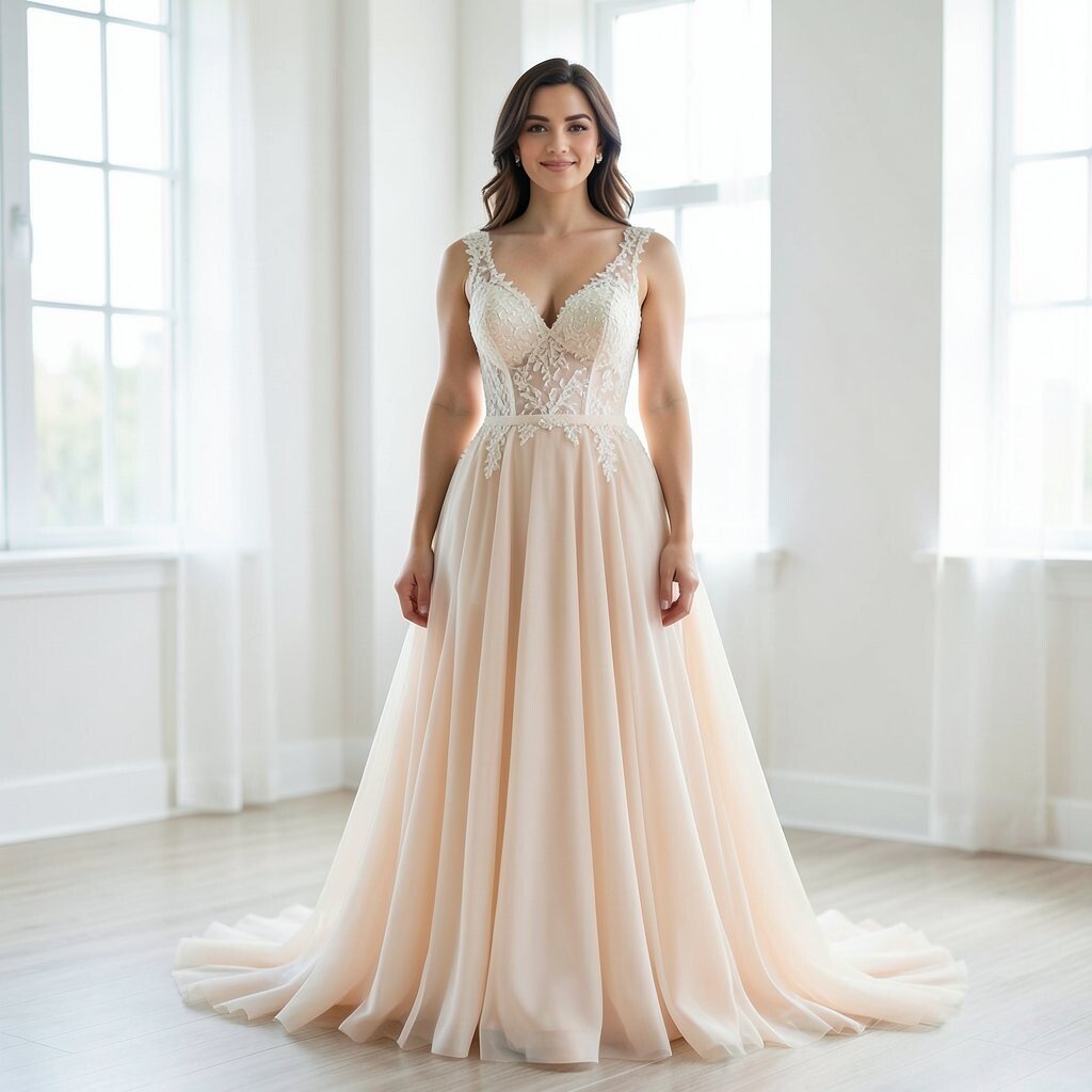 Soft pastels are often seen in this style, but rich shades can feel just as lovely. If you want to personalize it, choose a gown with a unique neckline or a hidden sparkle layer.