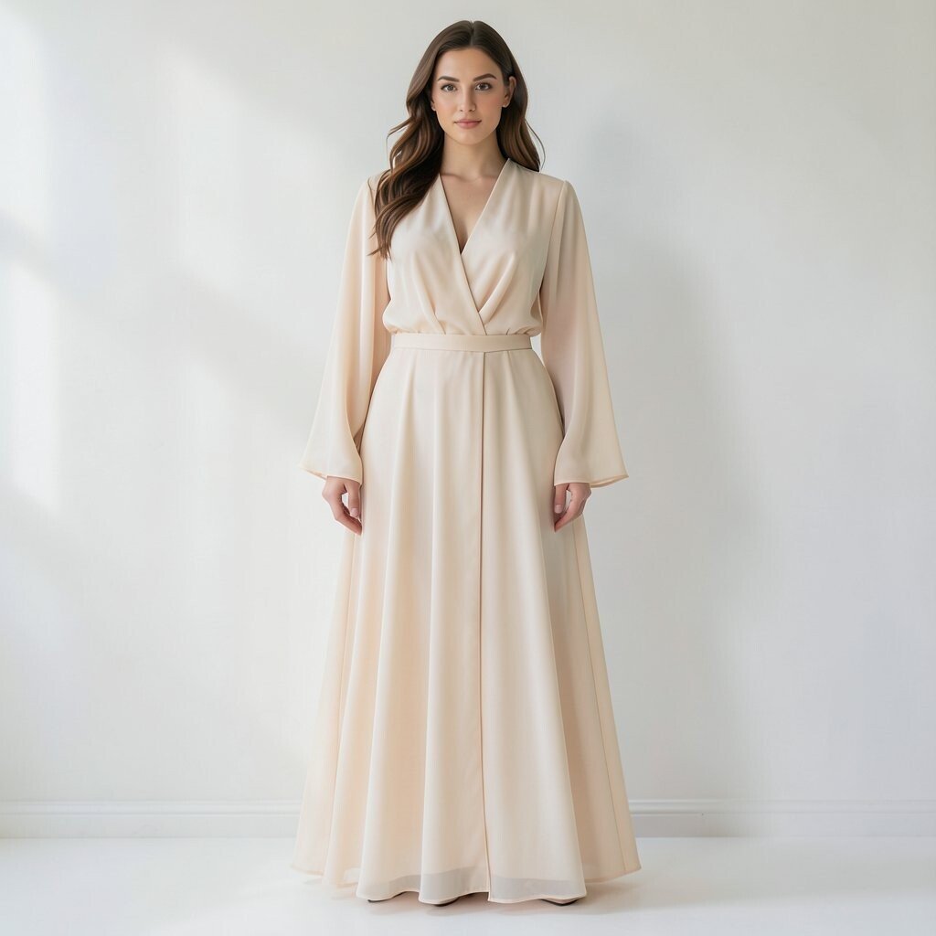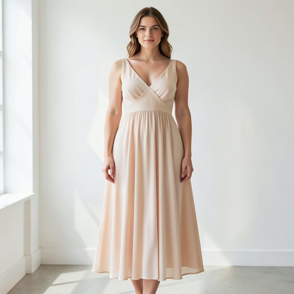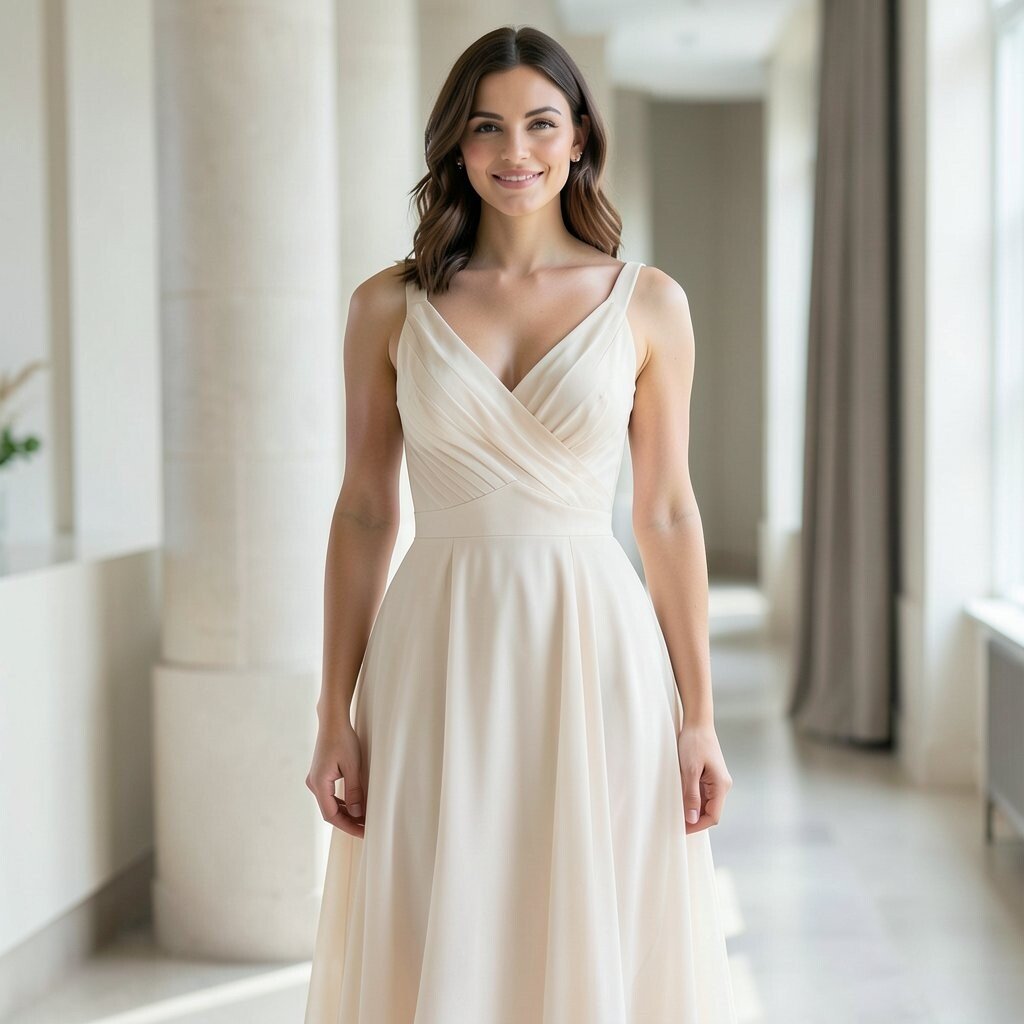 This style is lovely for beach weddings, evening parties, and warm-weather events. It can make the body look longer, which many people enjoy, and it often feels very comfortable. Try a soft print or a solid pastel if you want a gentle, romantic mood.