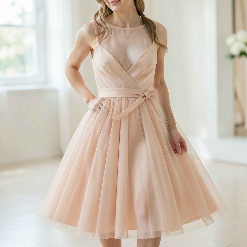 This style is great for special events where you want something different. The chiffon keeps it smooth, while the tulle adds a light, airy shape. Try pastel shades for a sweet mood or deeper colors for a more grown-up feel.