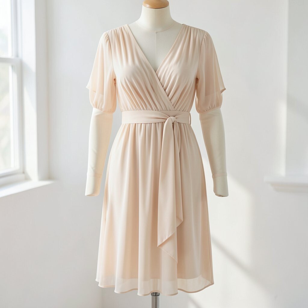 A chiffon overlay wrap dress is known for its easy shape and soft flow. The wrap style helps define the waist while the chiffon adds gentle movement.