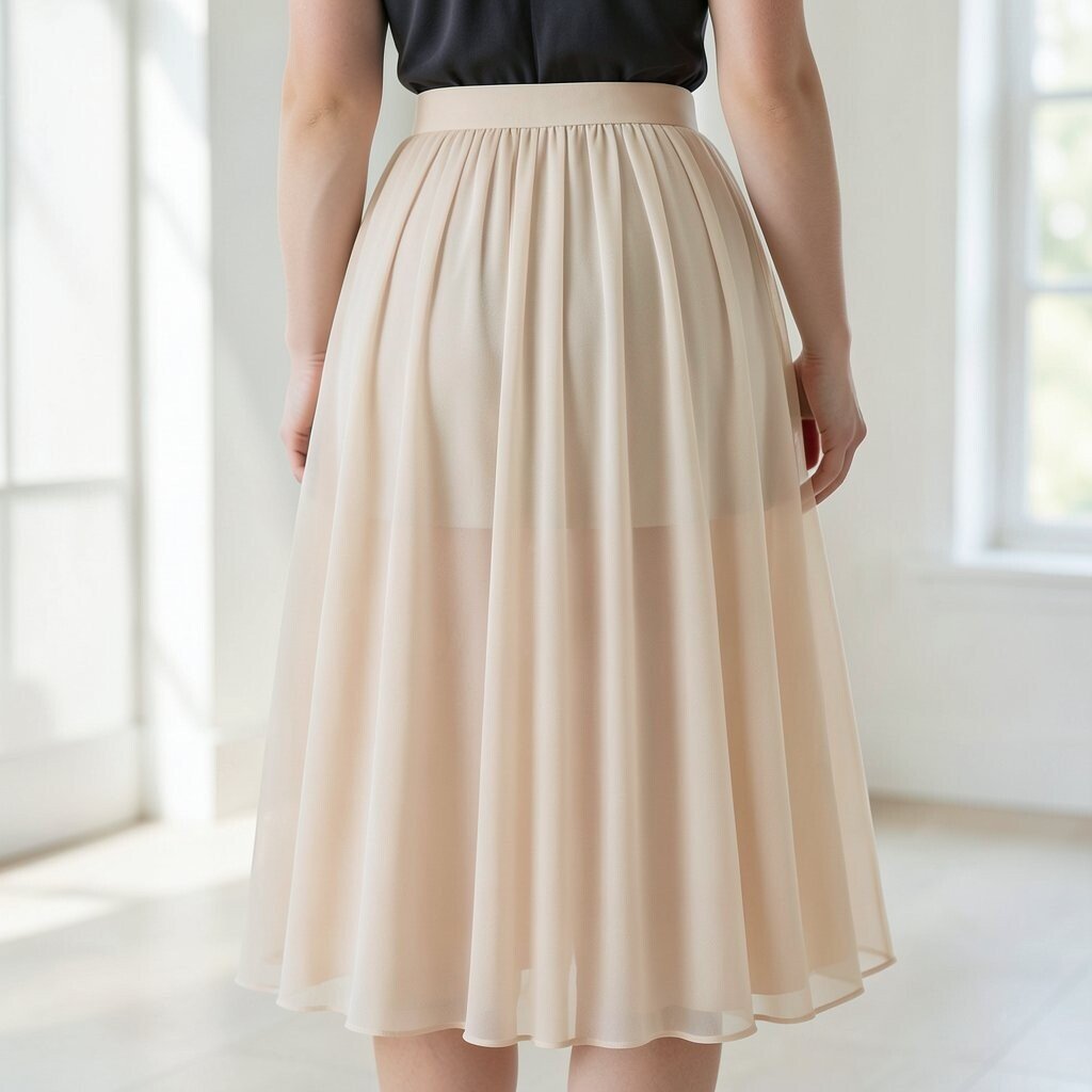 A chiffon overlay skirt adds movement with every step. The outer layer can be smooth and floaty, which makes the whole outfit feel light.