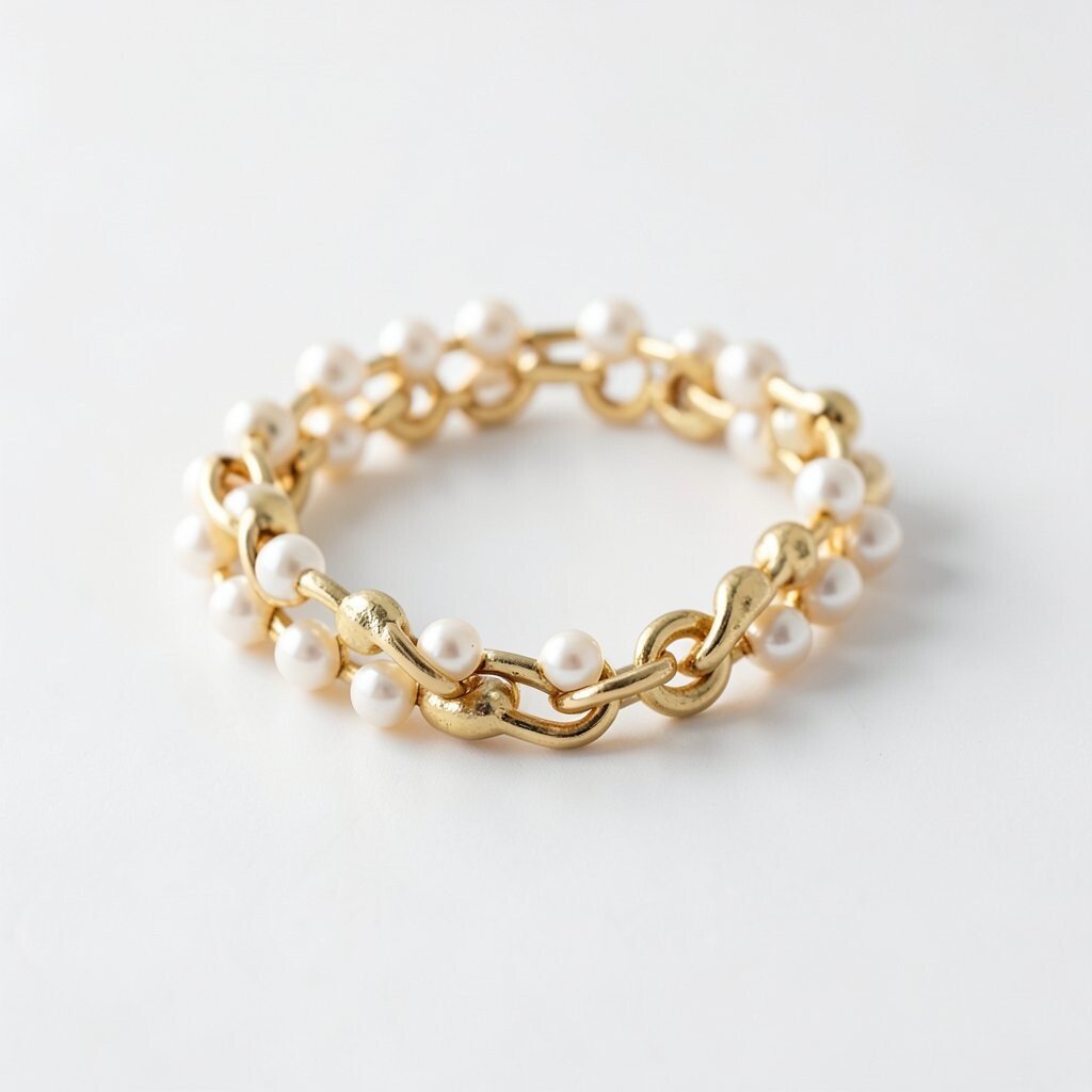 The combination of gold and pearls offers a sophisticated look. This bracelet blends elegance with a touch of modern style.