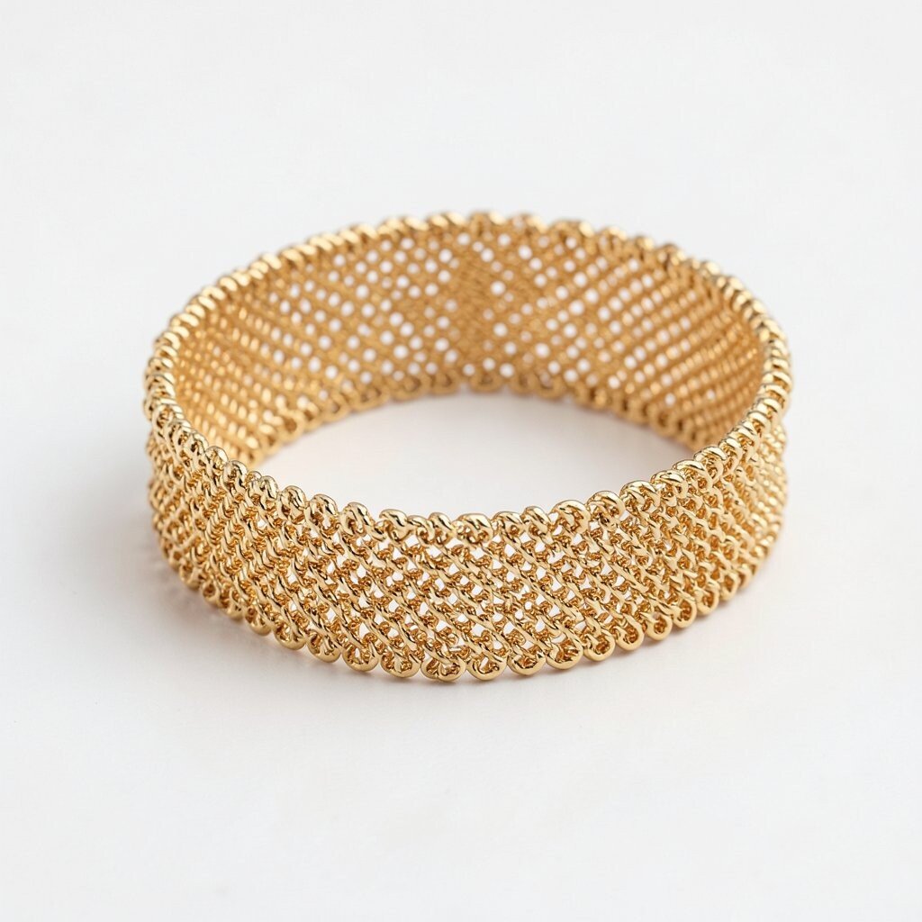 Mesh bracelets are made from woven gold strands, creating a flexible, fabric-like texture. They offer a unique tactile experience.