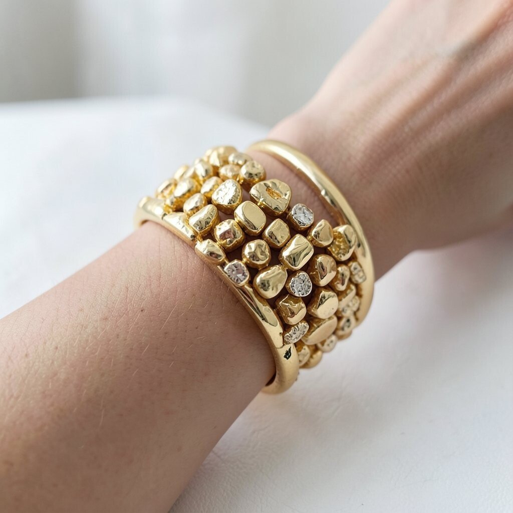 Textured bracelets can range from hammered designs to brushed finishes, giving each a unique appearance. These textures add a tactile element to your jewelry.