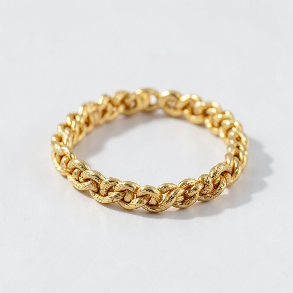 The braided design offers a unique twist to the standard gold bracelet, giving it texture and depth. It’s a great choice for those who love intricate designs.