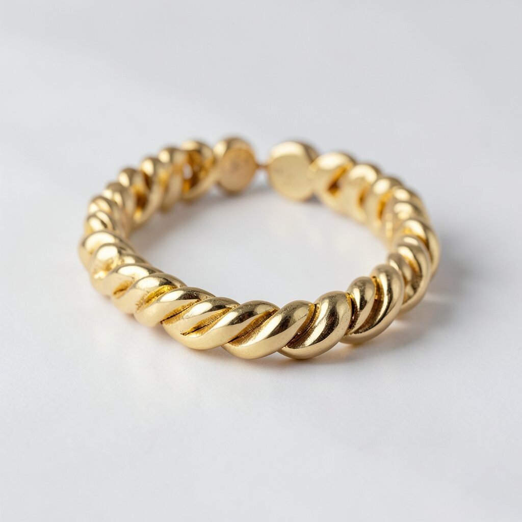 Twisted designs create a spiral pattern that’s visually interesting. This bracelet type offers a fresh take on traditional gold jewelry.