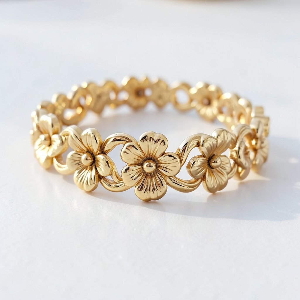 Floral designs bring a touch of nature to this gold accessory, offering a feminine and delicate look. This bracelet type is perfect for nature lovers.