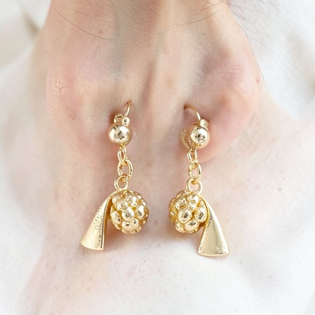 Gold ball earrings are simple yet elegant. The spherical shape is classic and timeless, making them a versatile choice. These earrings are perfect for adding a touch of gold to any outfit.