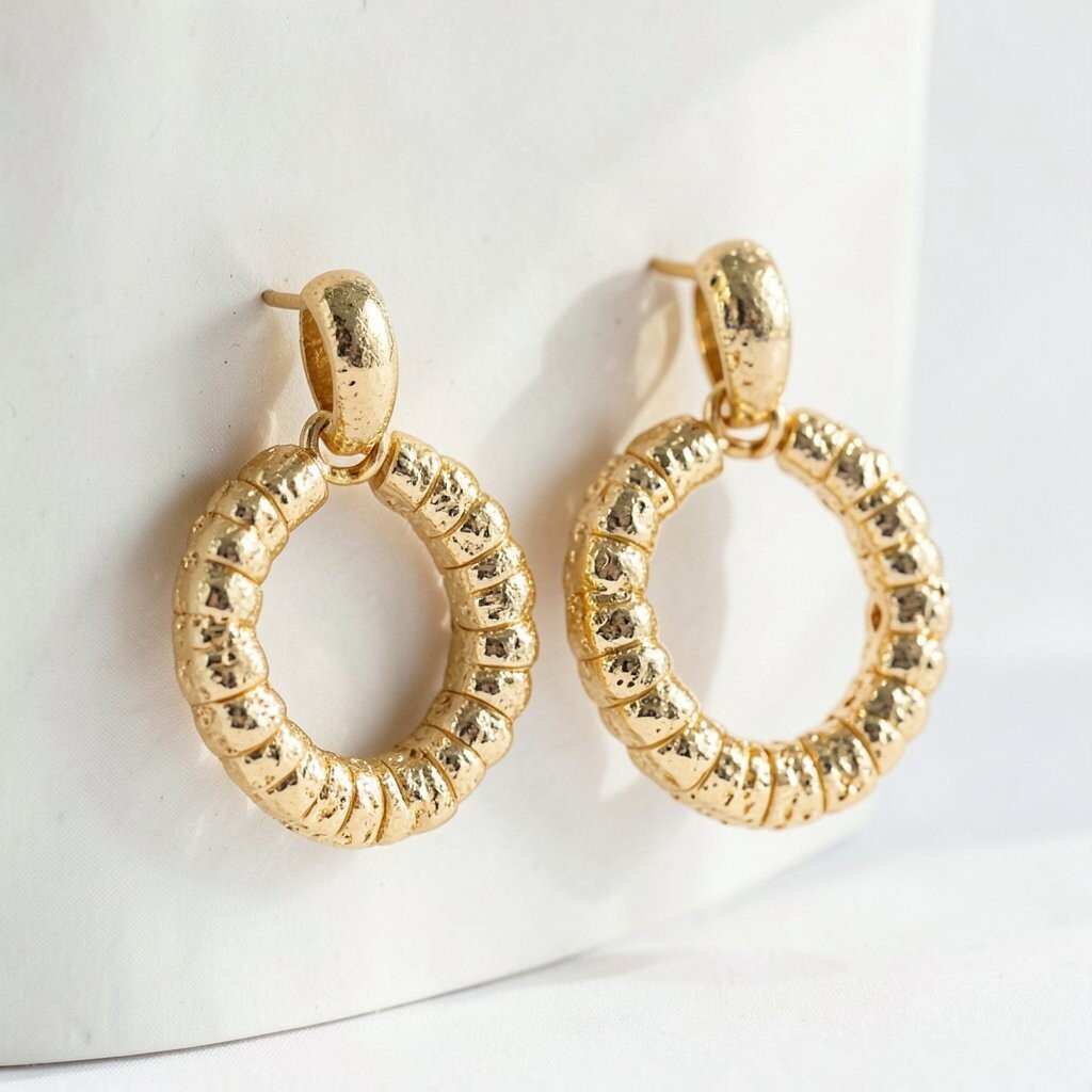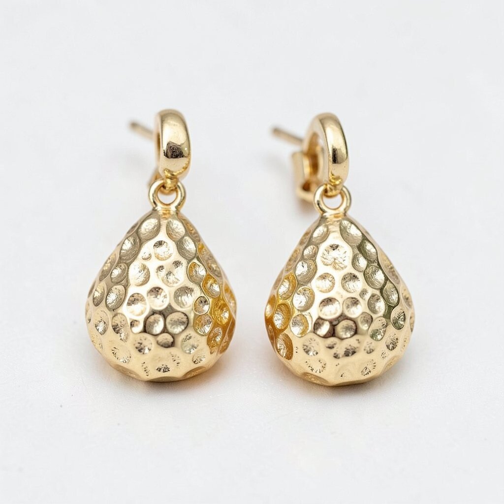 Hammered gold earrings have a distinct texture that catches the light beautifully. The uneven surface gives them a handcrafted feel, making each pair unique. These earrings are great for adding a touch of artistic style to your outfit.