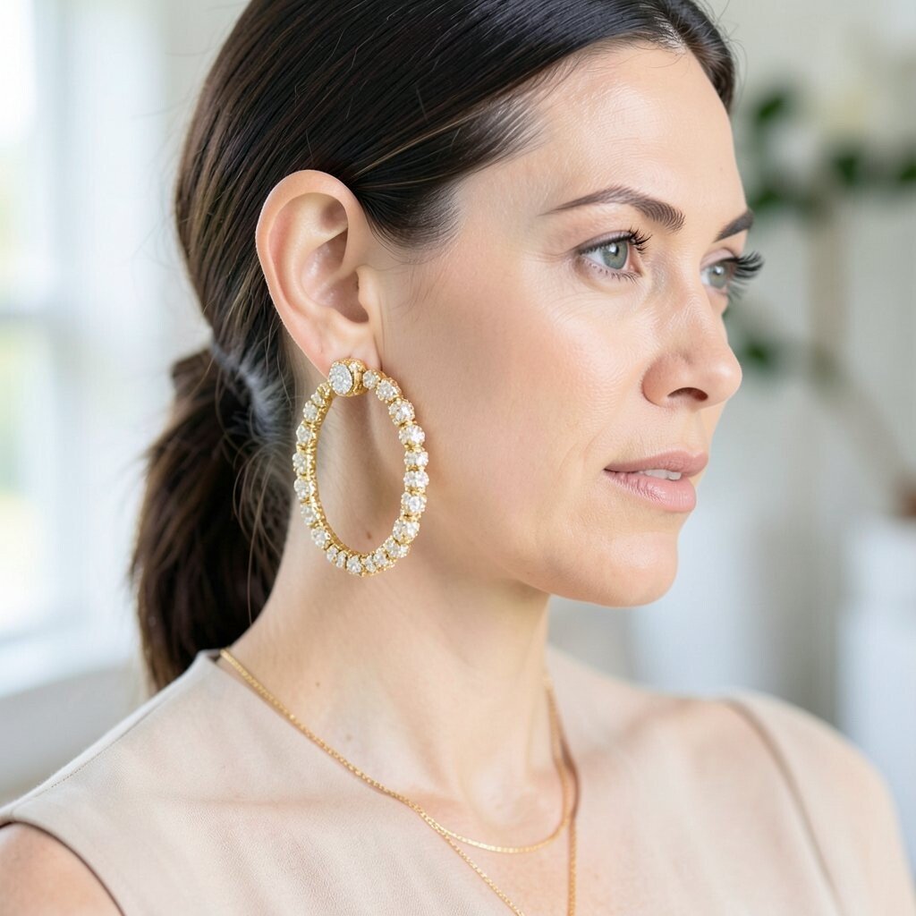 Classic gold hoop earrings are a must-have for any jewelry collection. They come in various sizes, allowing you to choose the perfect pair for your style. Hoops are versatile and can be worn with casual or formal outfits.