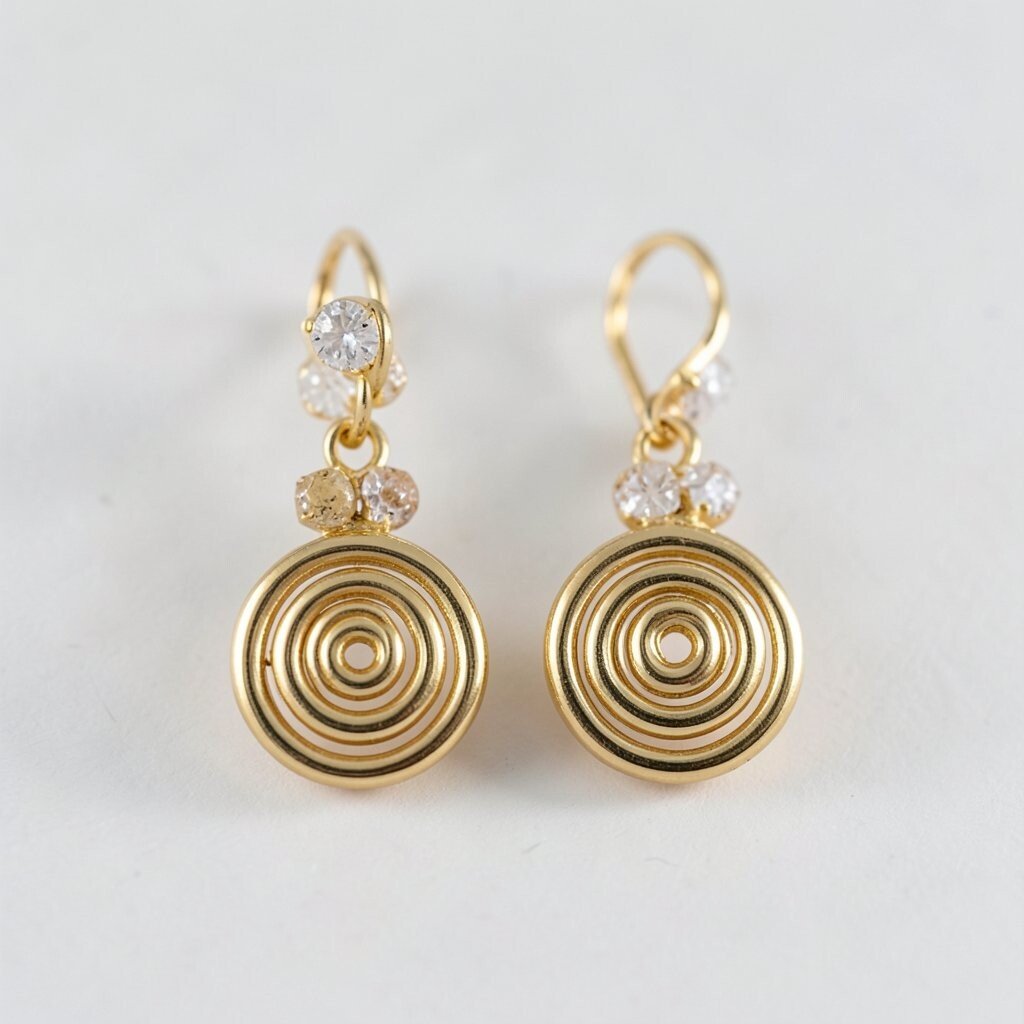 Spiral gold earrings offer a unique and creative style. The spiral design adds movement and interest, making them stand out. These earrings are perfect for those who love artistic and modern designs.