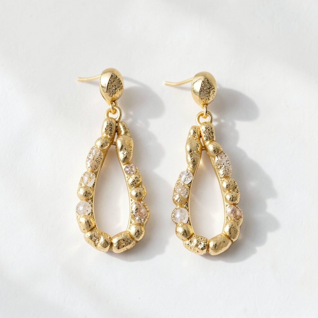Gold teardrop earrings have a classic and graceful design. The teardrop shape is flattering and elongates the neck. These earrings are perfect for adding a touch of elegance to your look.