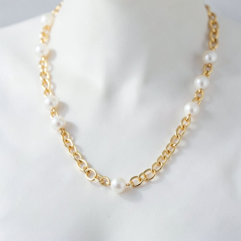 Combining gold with pearls creates a timeless beauty. The pearls add a soft contrast to the bold gold chain.