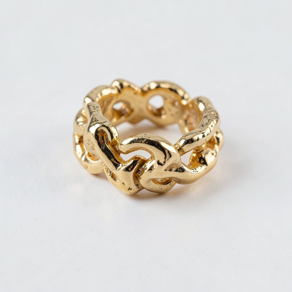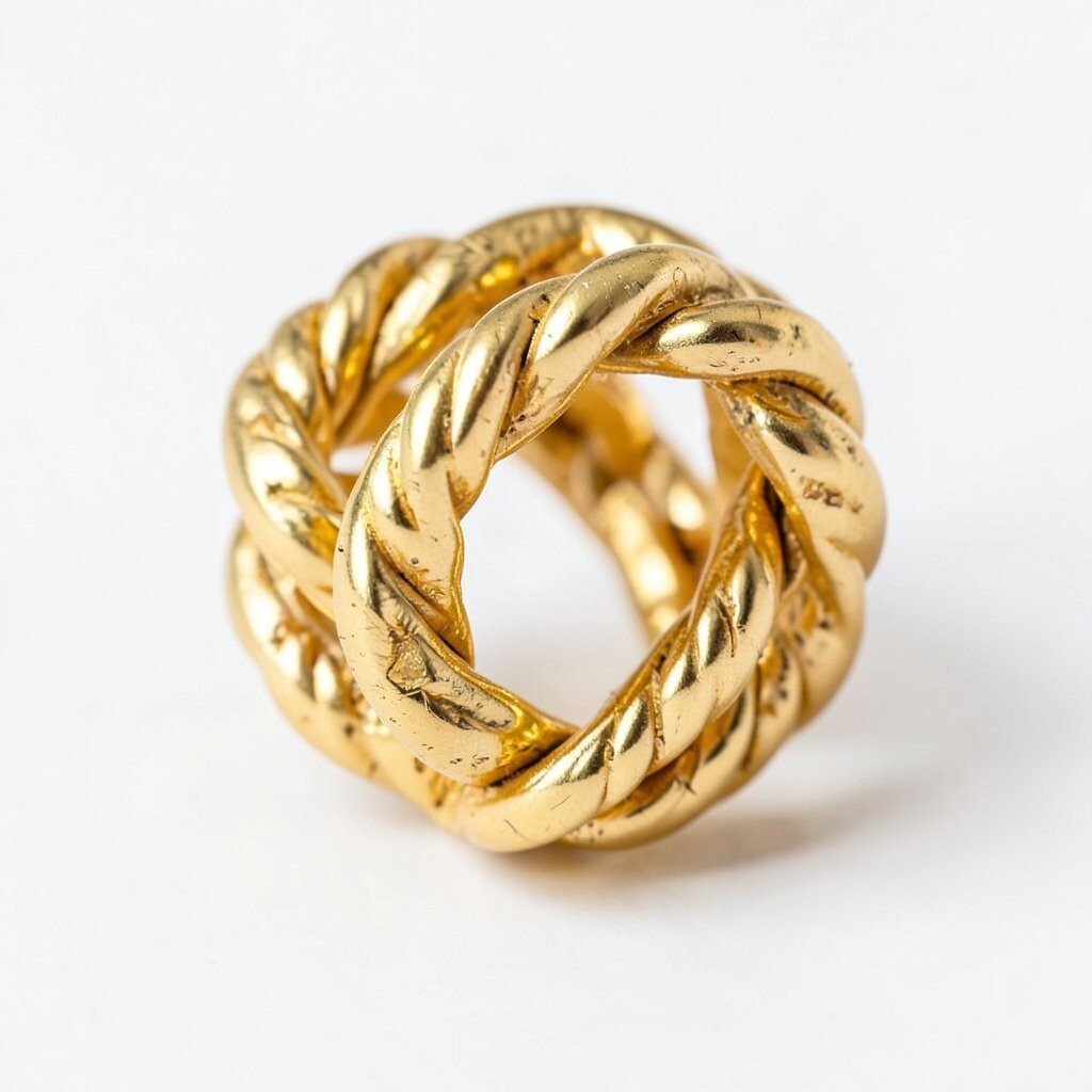 Imagine a ring with thick, interwoven strands of gold. It’s both bold and beautiful.