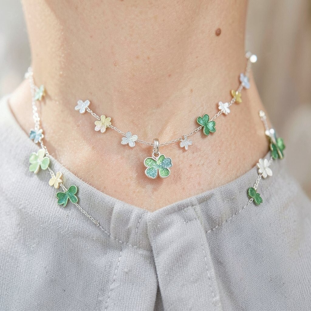 A clover pendant necklace is a simple yet striking accessory. It can be worn with casual or formal attire.