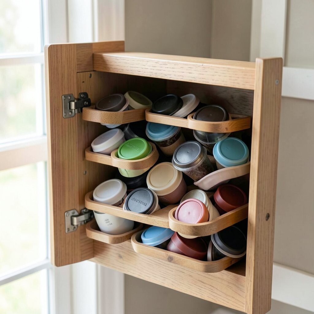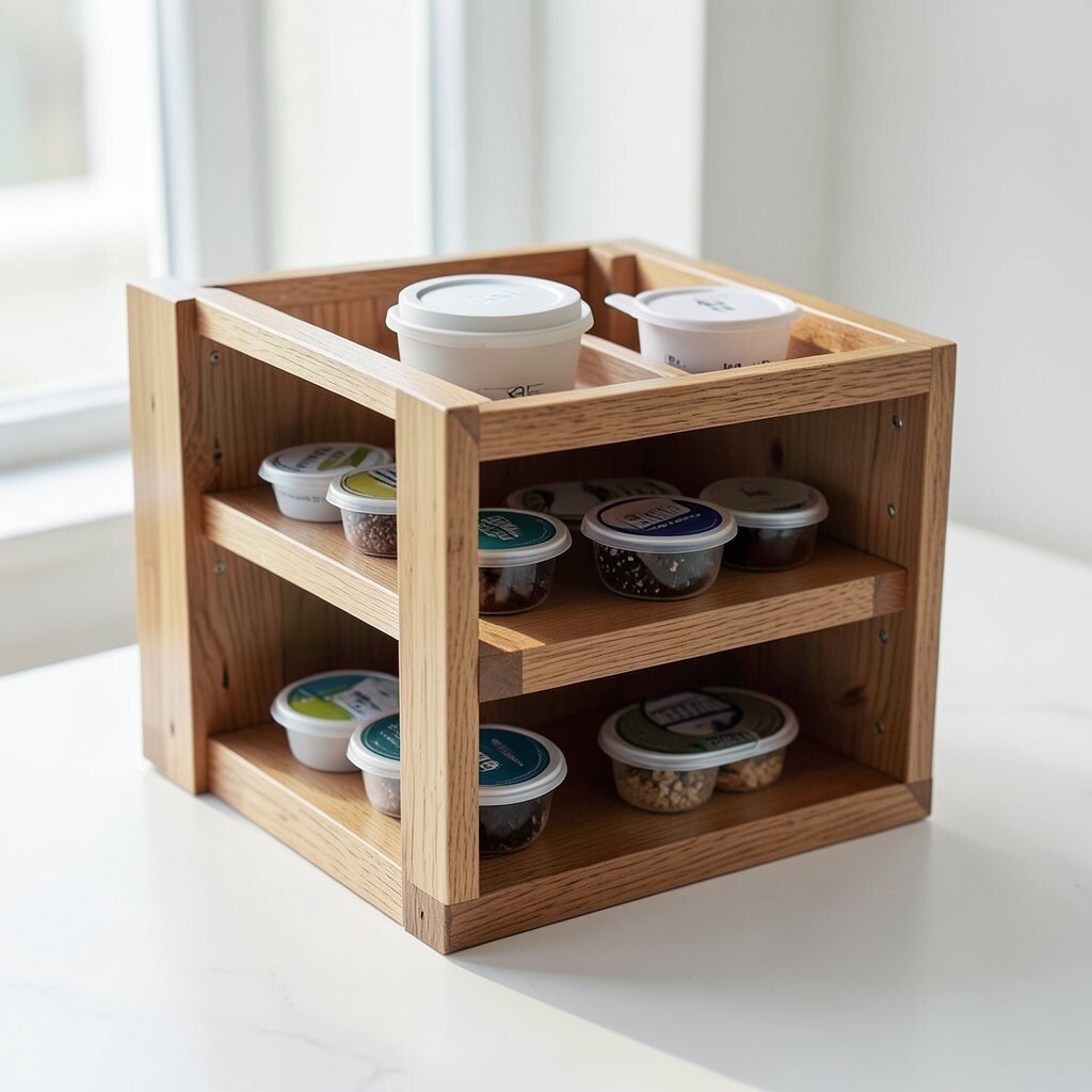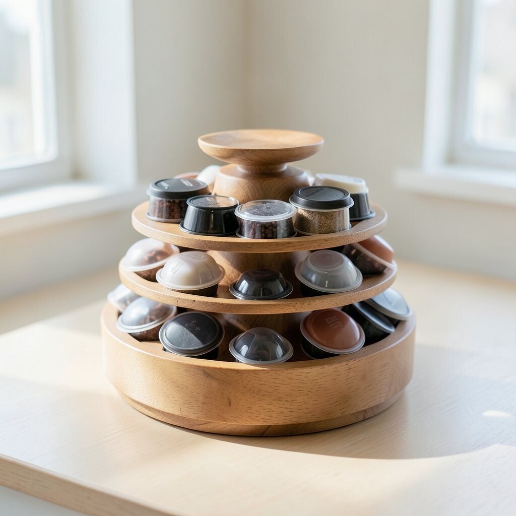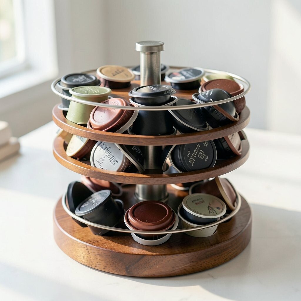 A Lazy Susan is a rotating tray that provides easy access to coffee pods. It’s a practical and space-efficient solution for any kitchen.