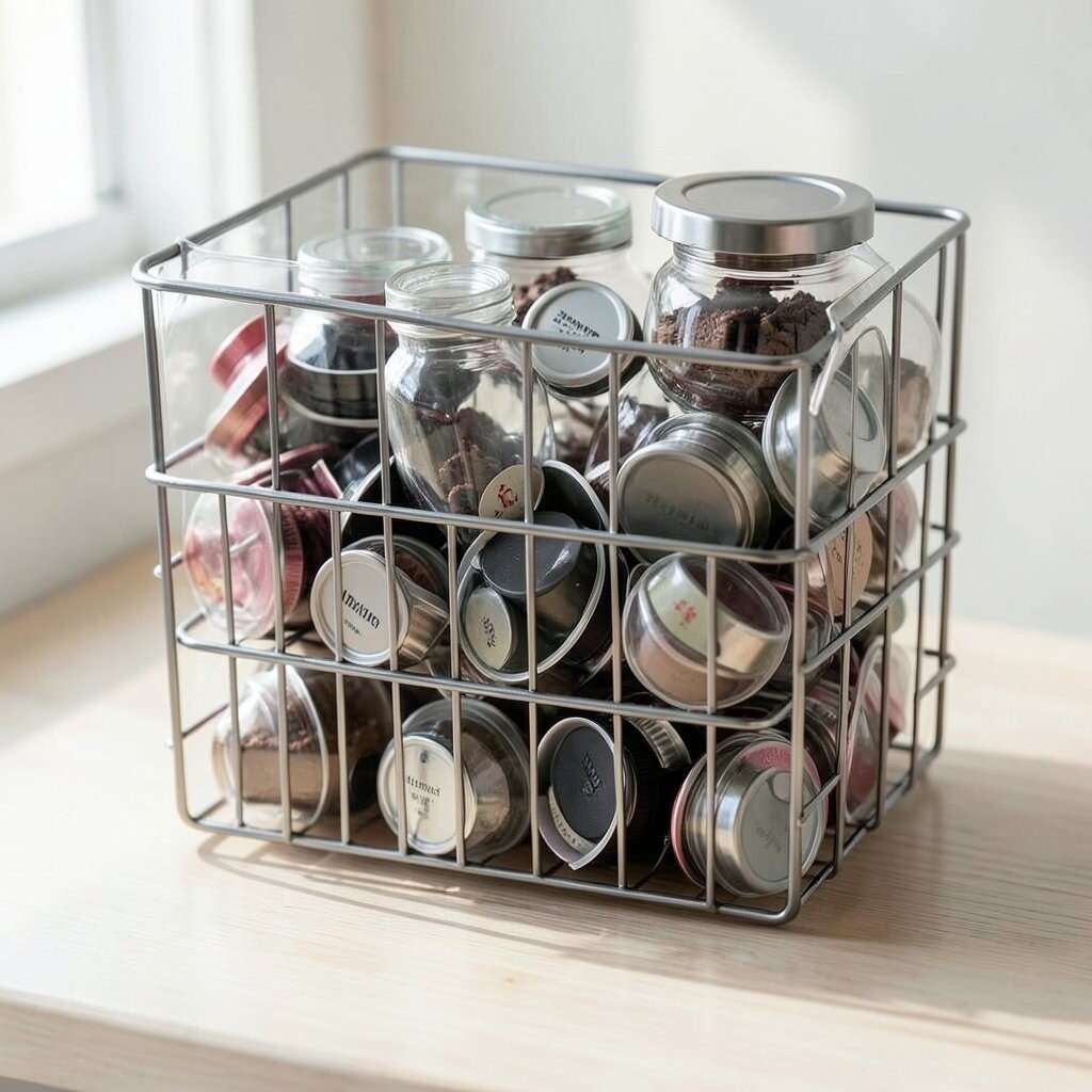 Wire baskets offer a rustic and charming way to organize coffee pods. They provide a breathable storage option that keeps pods easily accessible.