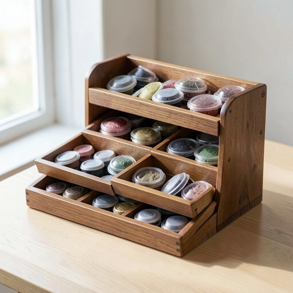 These trays can be customized to fit different pod sizes and quantities. They keep your collection neatly organized and hidden from view.
