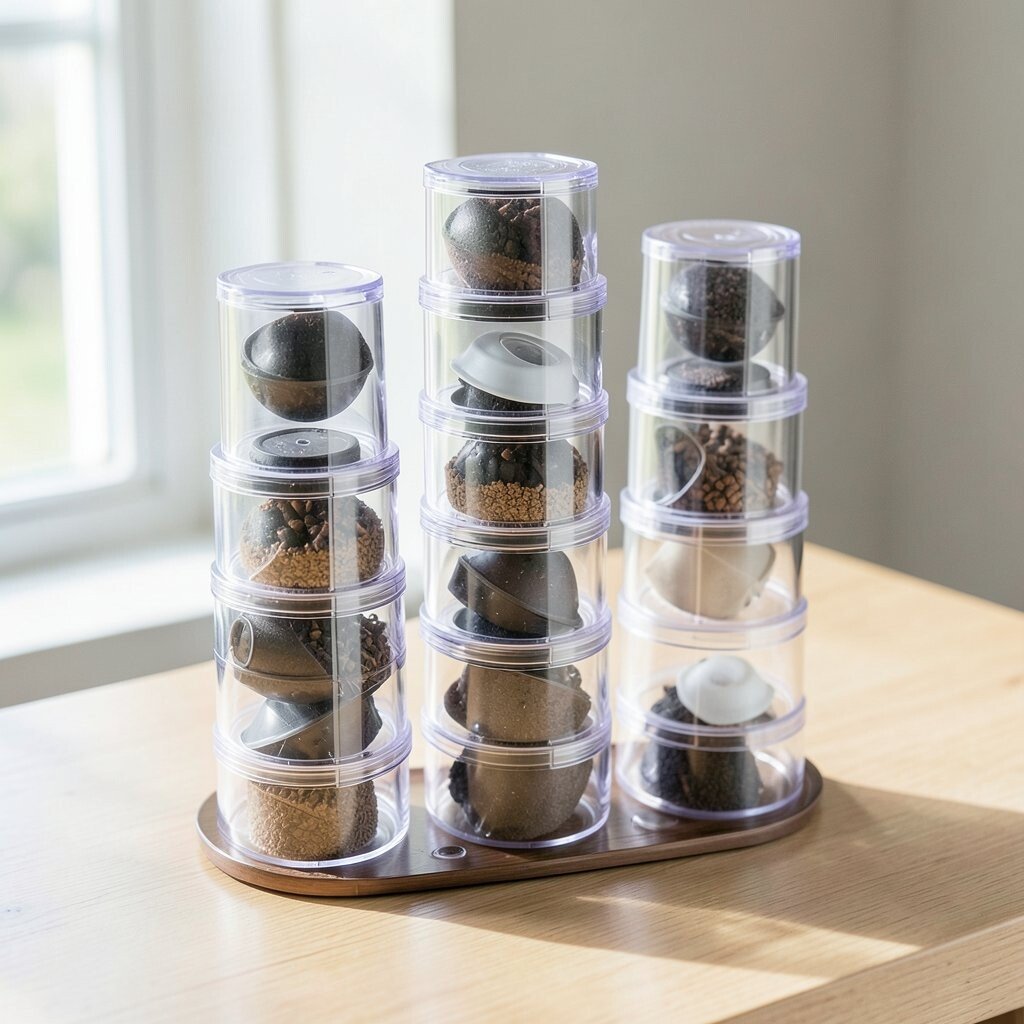 Acrylic pod towers offer a sleek and modern way to display coffee pods. Their transparent design provides a minimalist look.