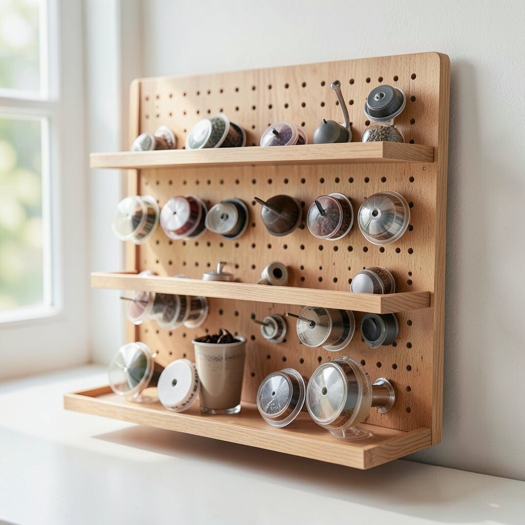 Pegboards are a versatile and customizable option for organizing coffee pods. They provide a blank canvas that can be tailored to your needs.