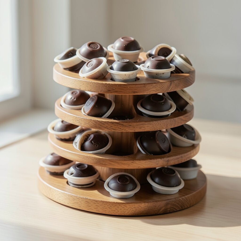 A rotating carousel is a fun and functional way to store coffee pods. It allows you to easily browse your selection with a simple spin.