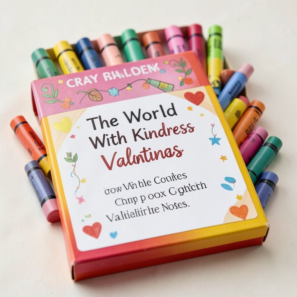 A small crayon box filled with kind notes feels playful and thoughtful. The colorful wrapper makes the whole gift look lively and cute.