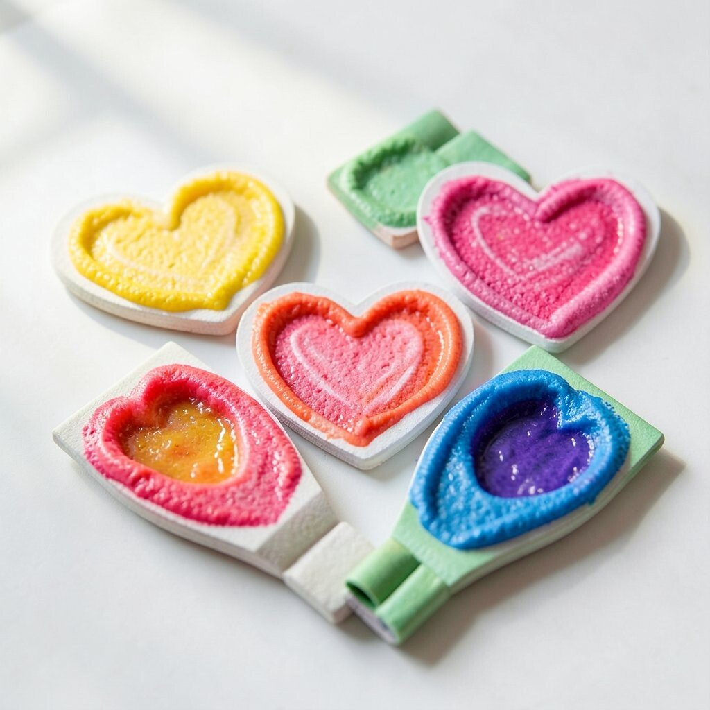 They are a fresh twist on a classic Valentine craft and feel very modern. Kids can mix colors to make marbled hearts that look bright and playful.
