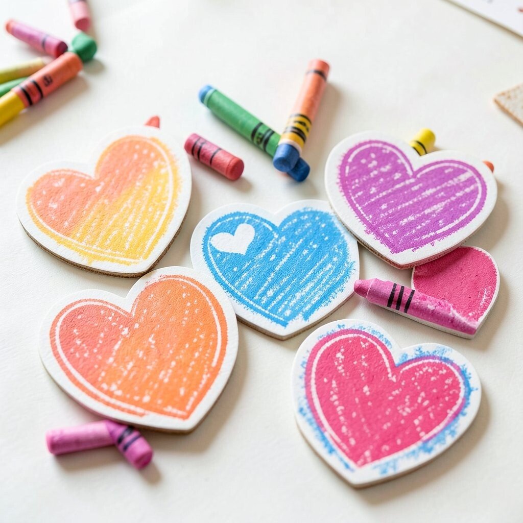 Kids can press crayon shavings into molds or use printed heart shapes for a simpler version. Add a name or tiny message to make each magnet feel special.