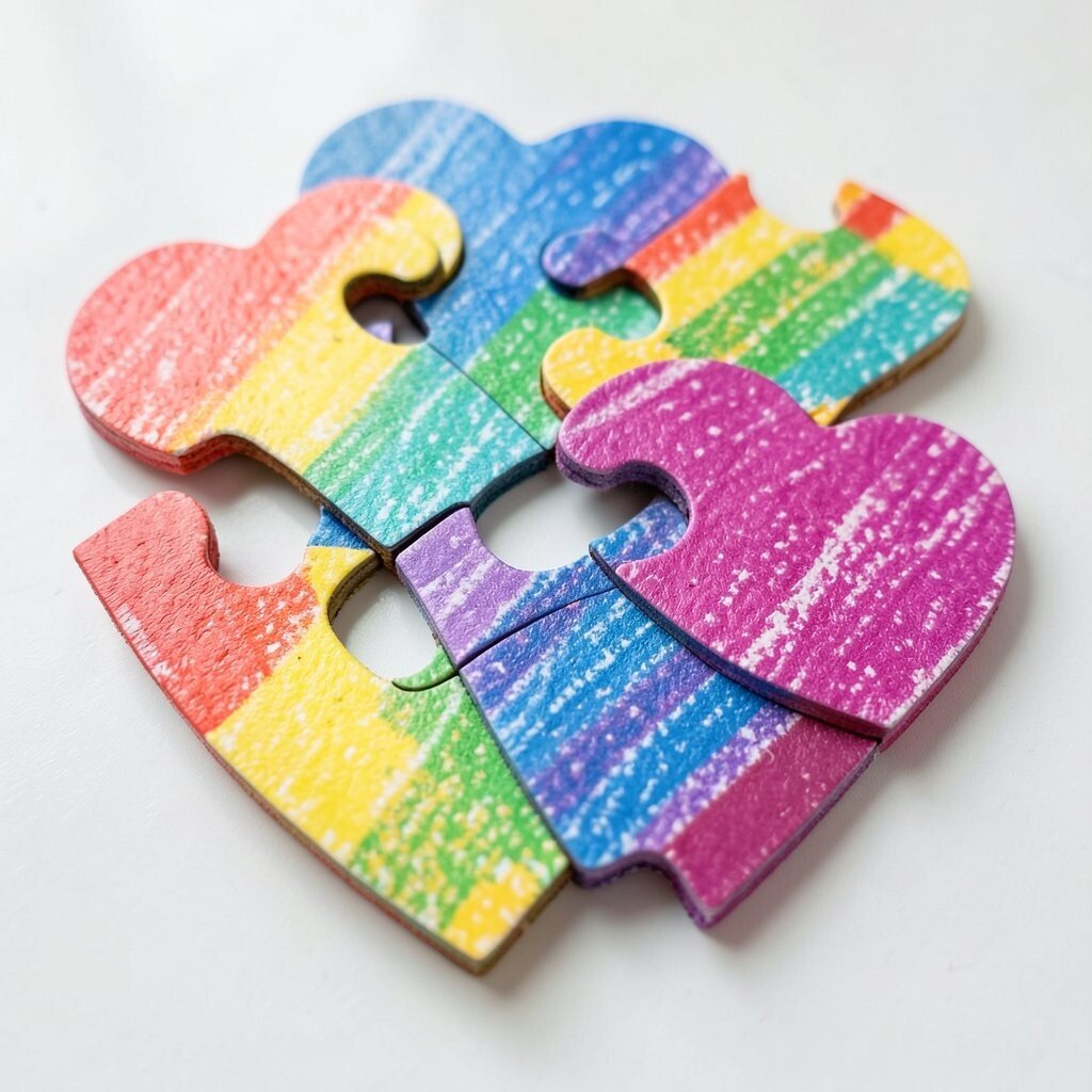 Puzzle pieces decorated with crayon art make a clever Valentine gift. When the pieces fit together, the design feels complete and sweet.