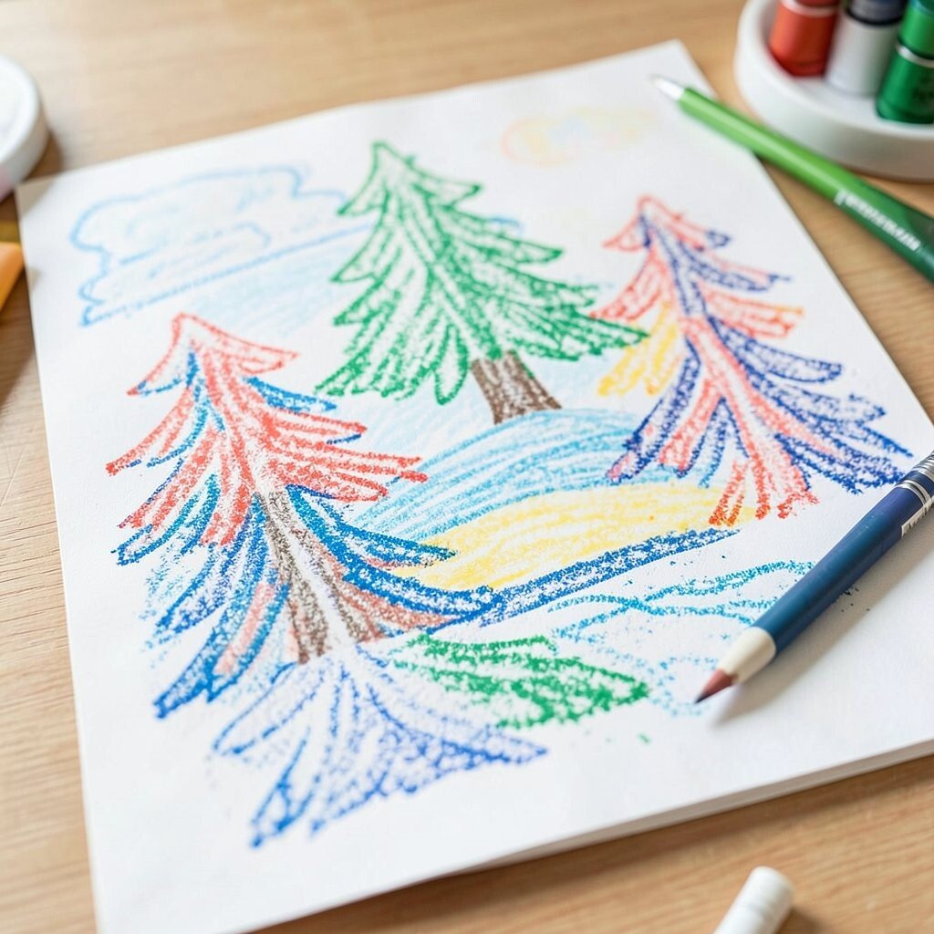 This project is easy, low-cost, and great for cold-weather days. It helps kids learn that light colors can still shine on dark paper. Add silver or pale blue crayons for extra sparkle, and use cotton or paper bits if you want a soft snowy texture.