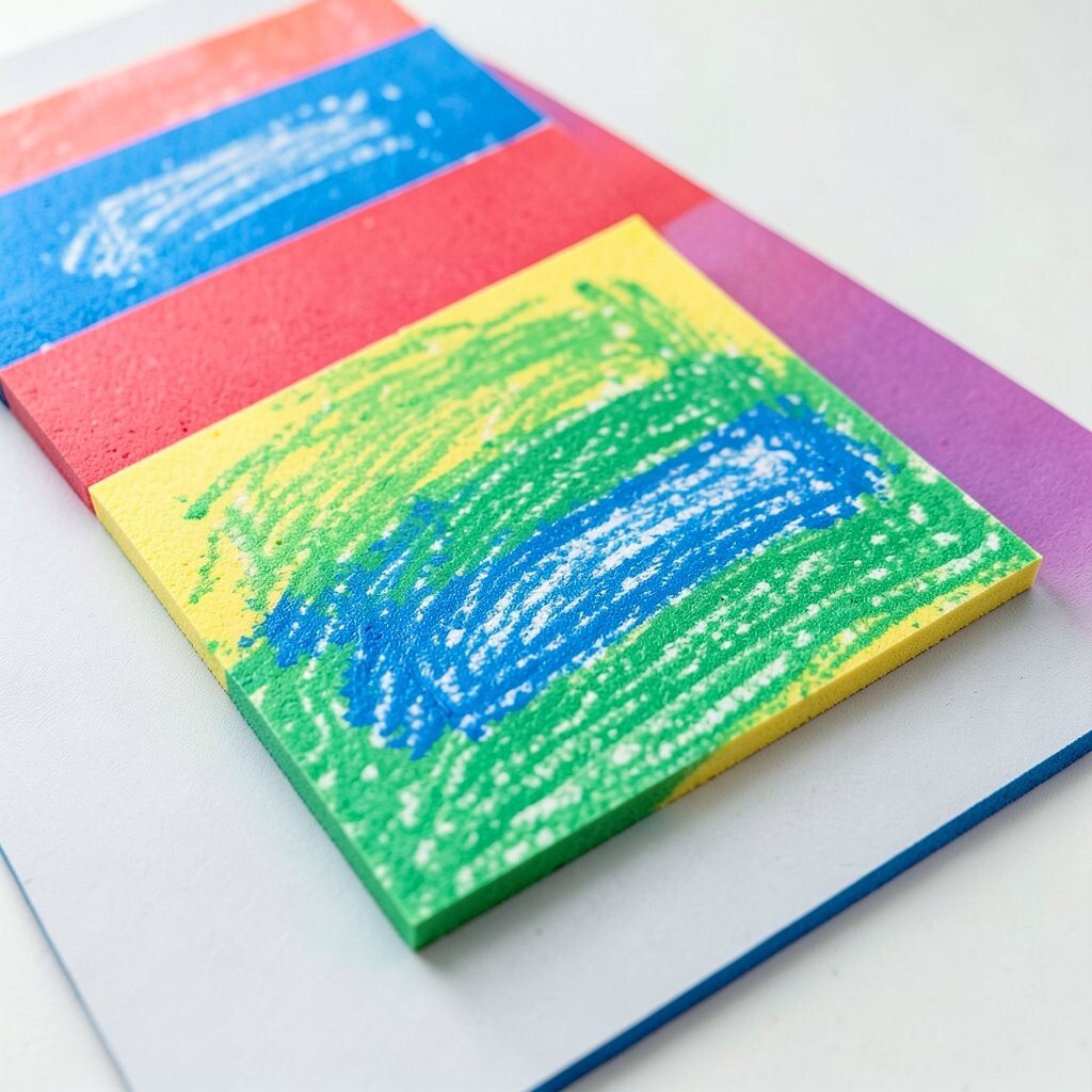 Foam sheets give crayons a soft and slightly bouncy feel. The smooth top layer lets color sit clearly while the edges stay neat and bright.