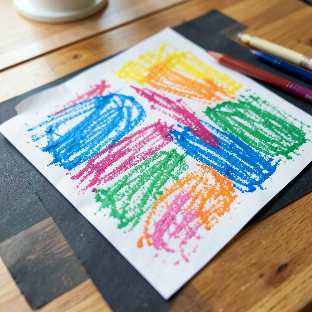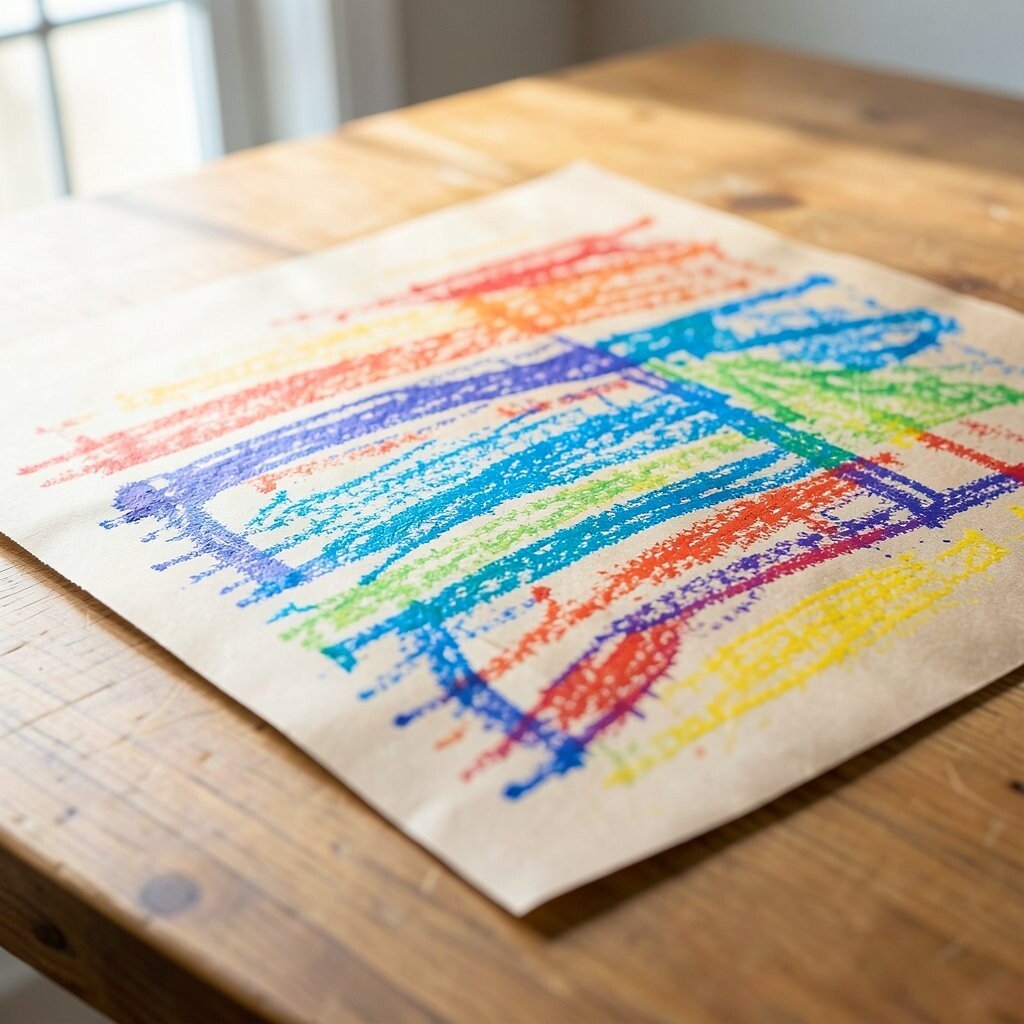 Spread kraft paper over a table and let crayons glide across the soft brown surface. The warm background makes bright colors pop in a cozy, handmade way.