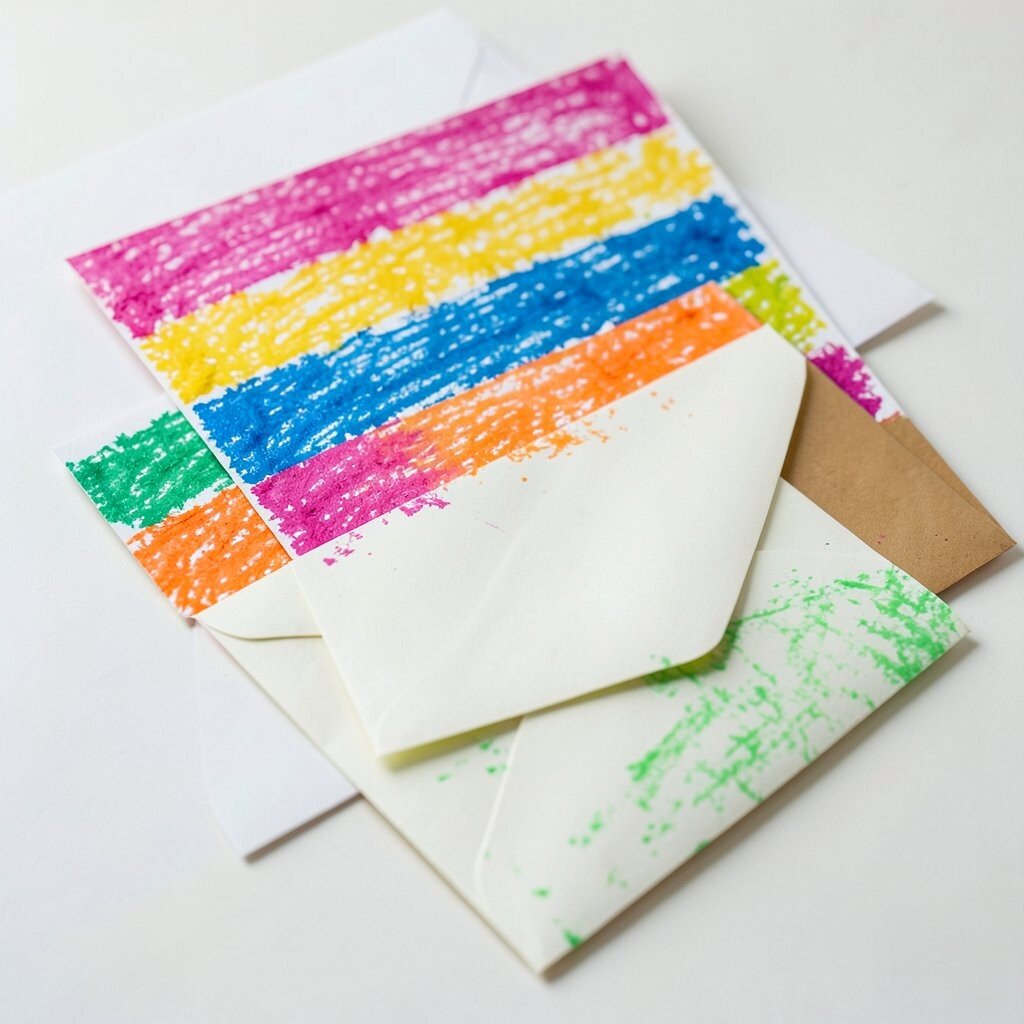 Plain envelopes can become tiny works of art before they are mailed or handed out. Crayons add color to the front, flap, and corners in a way that feels warm and personal.