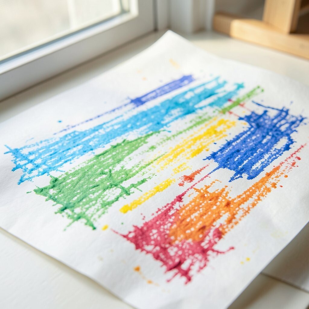 Tracing paper near a window gives crayons a soft, glowing look. Light shining through the page makes the colors feel airy and delicate.
