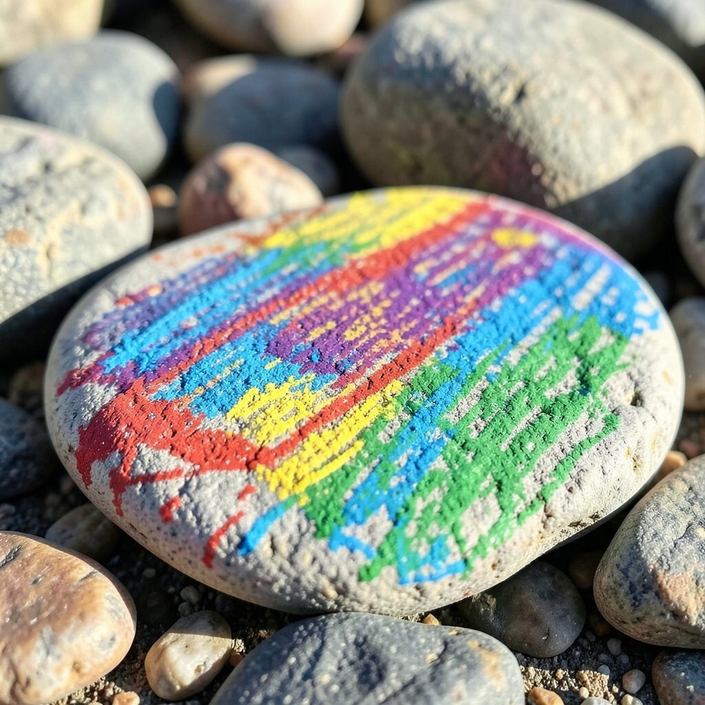 Flat rocks can become tiny canvases with lots of charm. Their cool, smooth surface gives crayon marks a playful, rustic look.