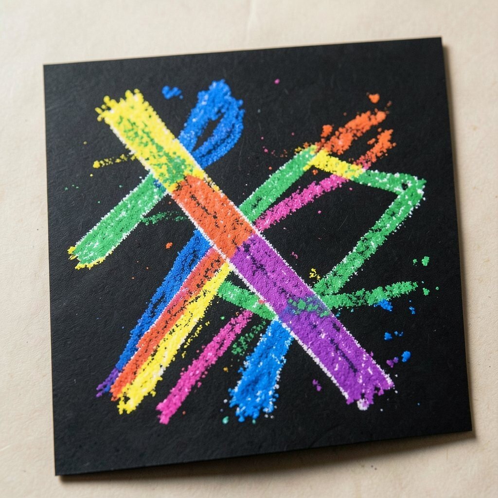 Black cardstock gives crayons a rich stage that makes every line stand out. Neon shades, white crayons, and metallic colors look extra bright against the dark page.