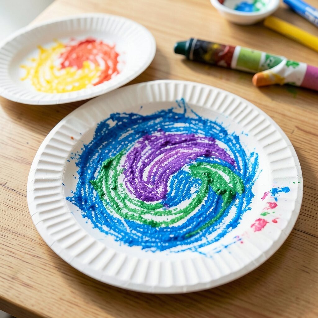 Paper plates give crayons a round stage that feels playful and bright. Their shape is perfect for faces, suns, clocks, or flower heads.