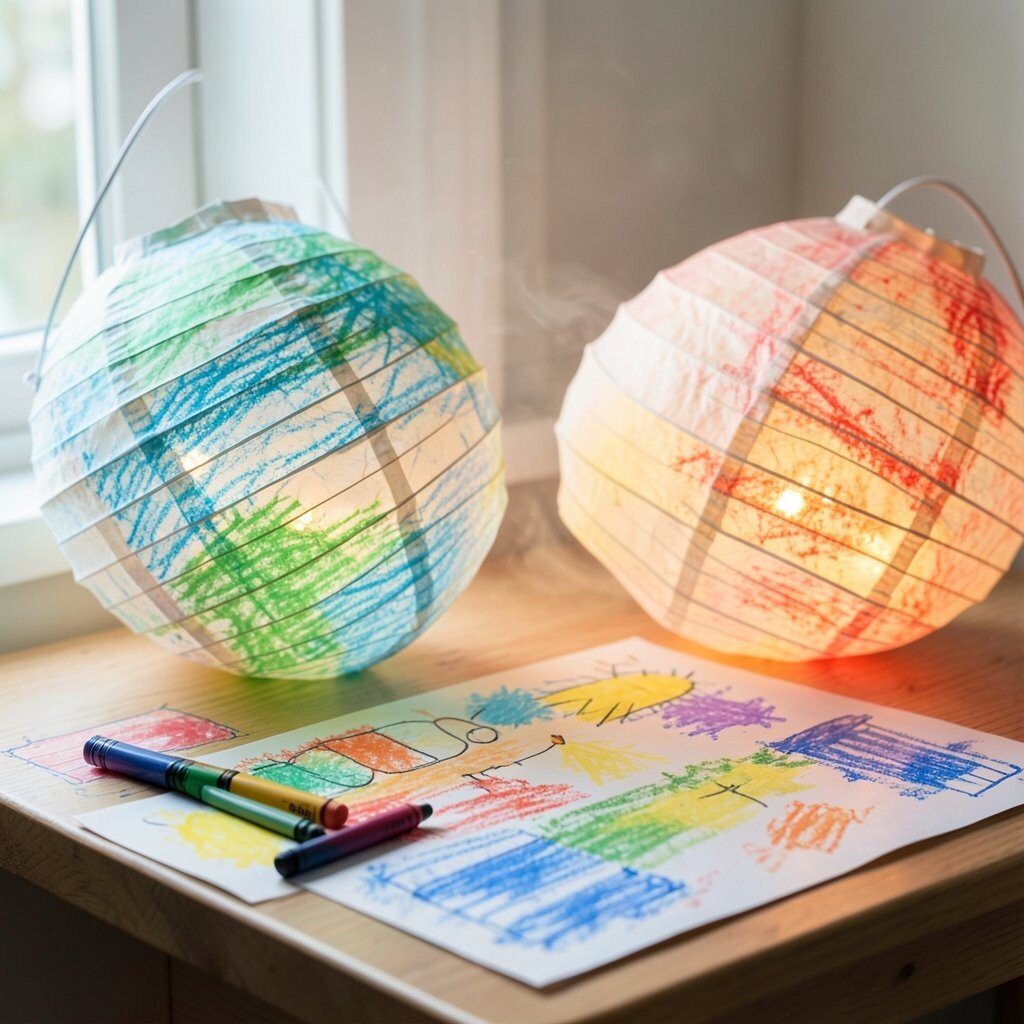 Paper lanterns give crayons a lovely surface that looks even better when lit from inside. The color shines through the thin paper and creates a gentle glow.