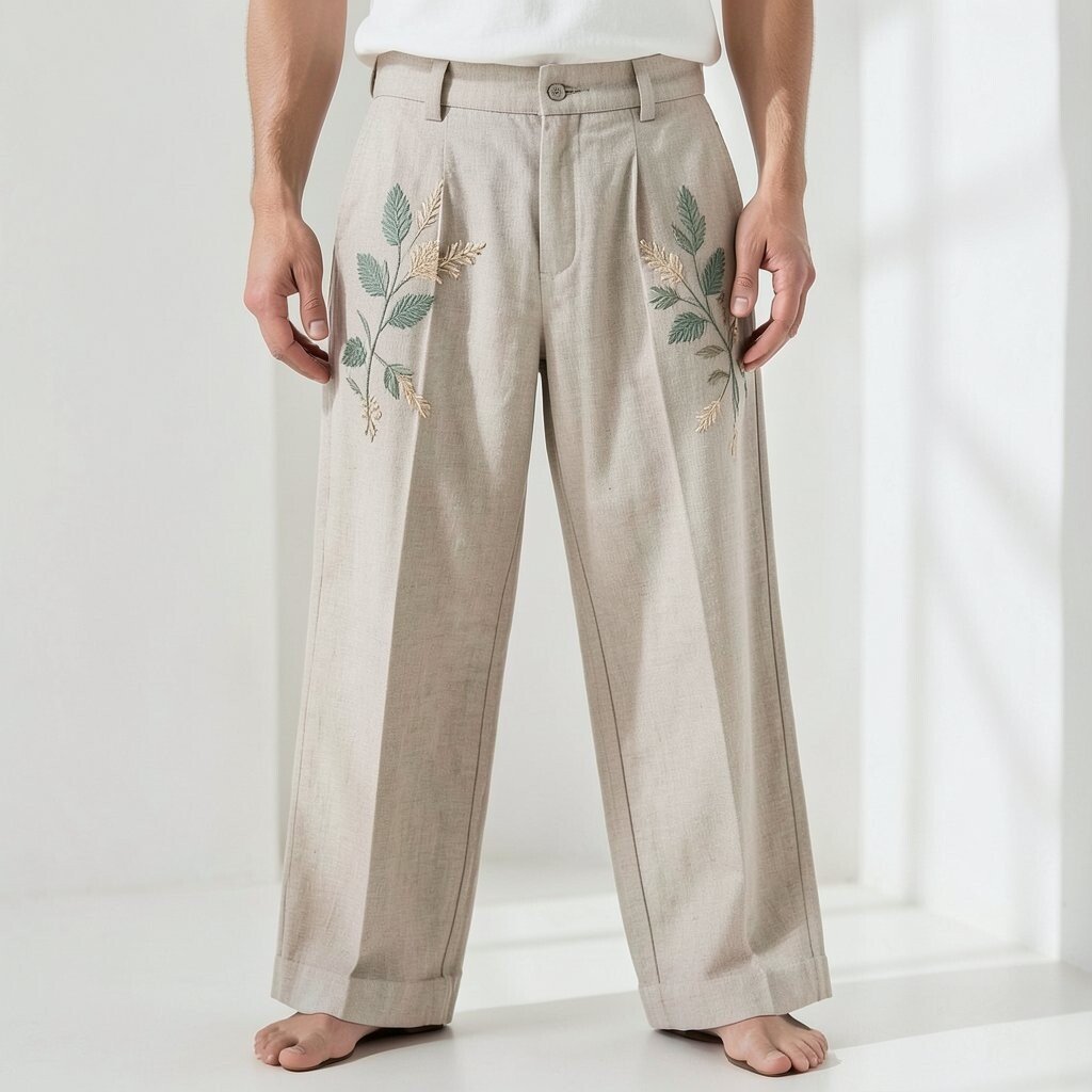 Embroidered details add a touch of luxury to these linen pants. They showcase intricate patterns that are both beautiful and timeless.