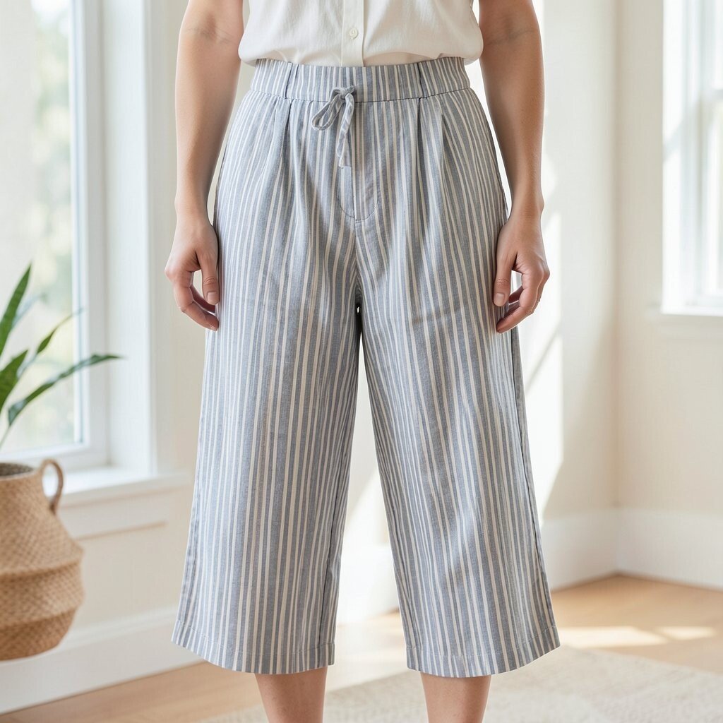 Culottes are in vogue, and these striped linen ones are no exception. They add a playful touch to any outfit, with their wide-leg design providing a breezy feel.