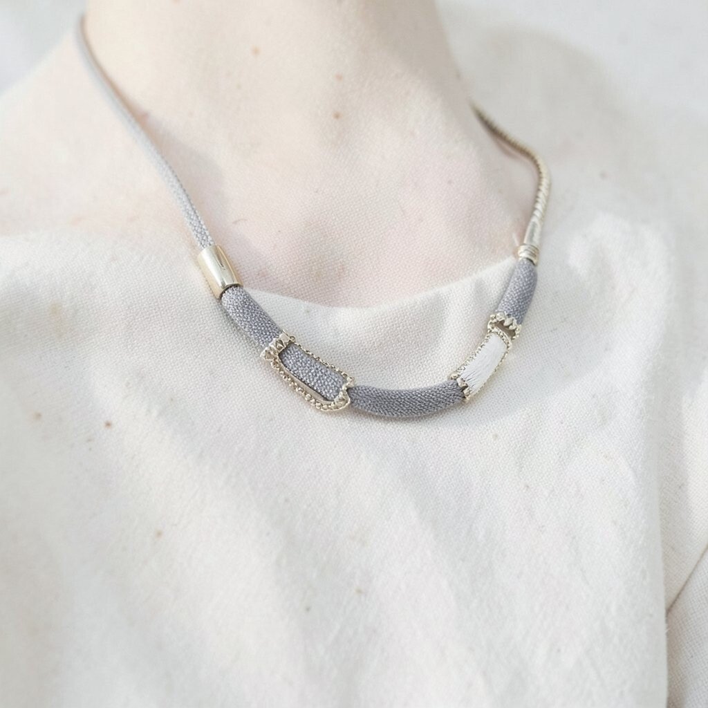 This blend of materials can add sophistication and edge to your style. It’s a modern twist on traditional fabric necklaces.