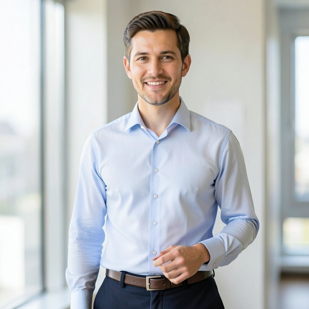 Choose a shirt with enough thickness to stay smooth under light. If the fabric is thin, use a matching undershirt to keep the look clean. This gives you more confidence in bright rooms and photos.