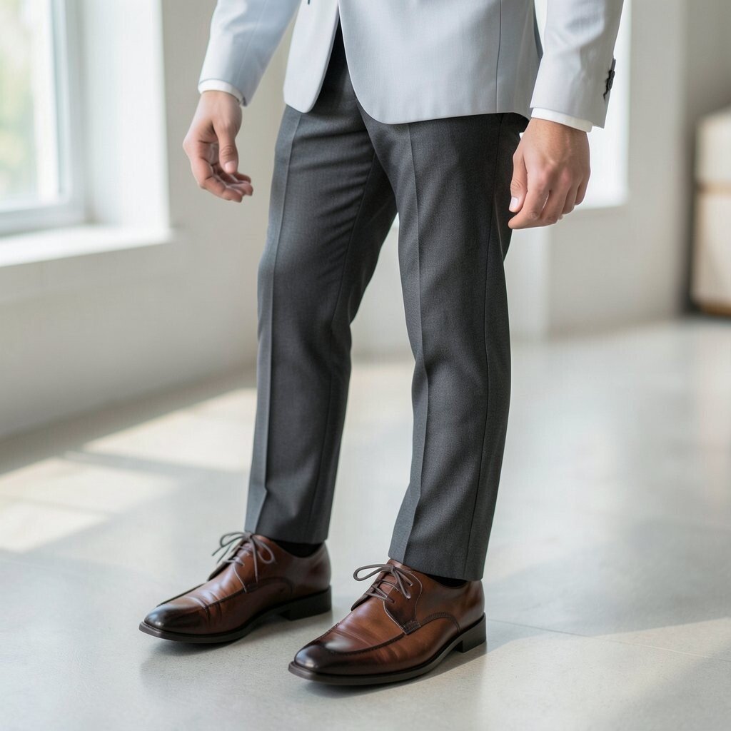 Current tailoring trends often favor a cleaner ankle line. If you want a personal touch, pair the right hem with a sleek sock or polished shoe. Good length helps everything else look better.
