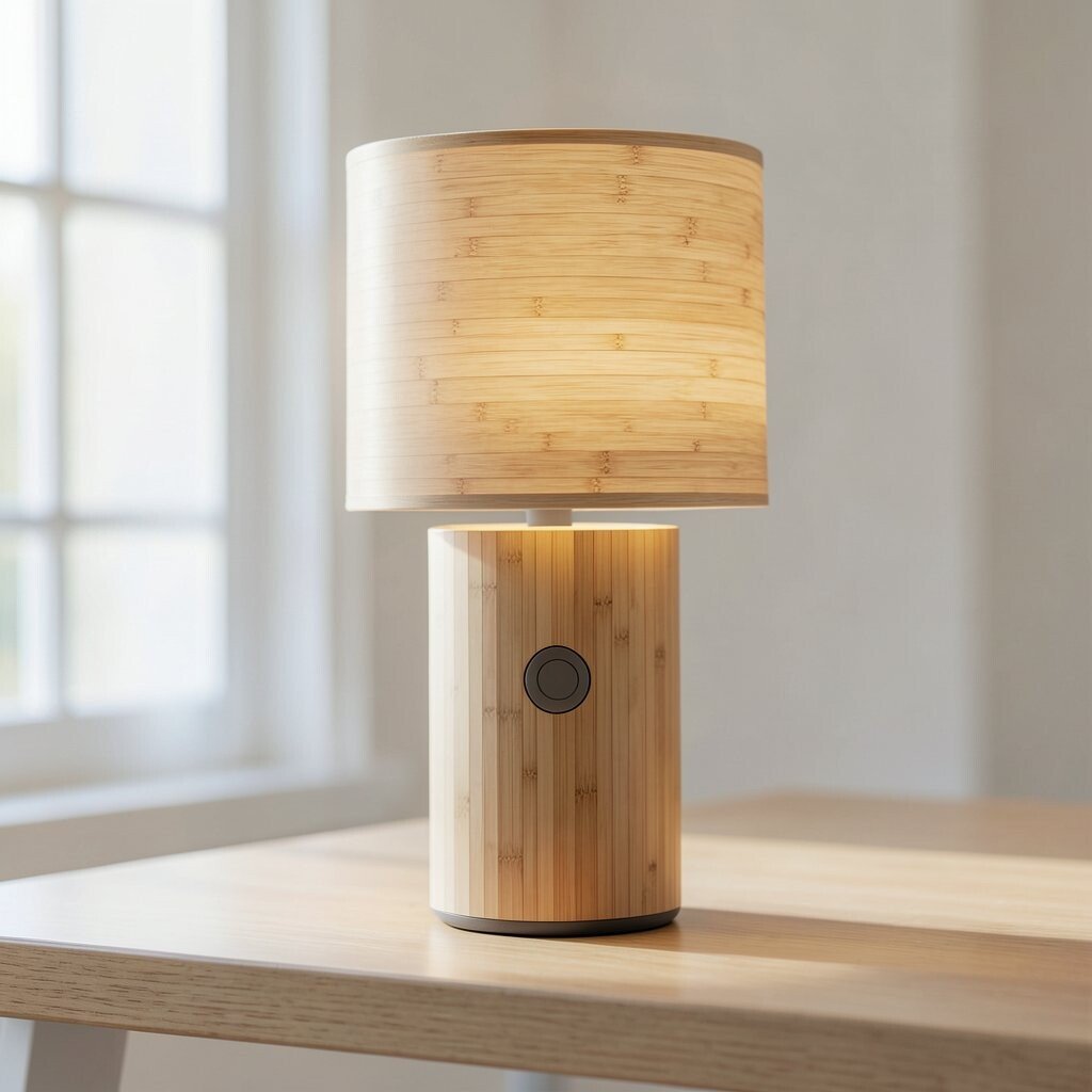 This lamp is crafted from sustainable bamboo, giving it an eco-friendly edge. The cylindrical shape is simple yet elegant.